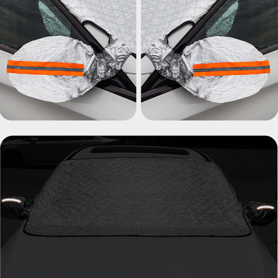 Built with 9 strong magnetic strips, this cover securely adheres to your windshield without scratching, even during strong winds. Two side wings pinch into the doors, ensuring the cover stays in place. The mirror cover includes a reflective stripe to keep rain, snow, and frost off your rearview mirrors, providing full coverage and enhanced protection. These features make the windscreen cover stable, durable, and reliable in any weather condition.