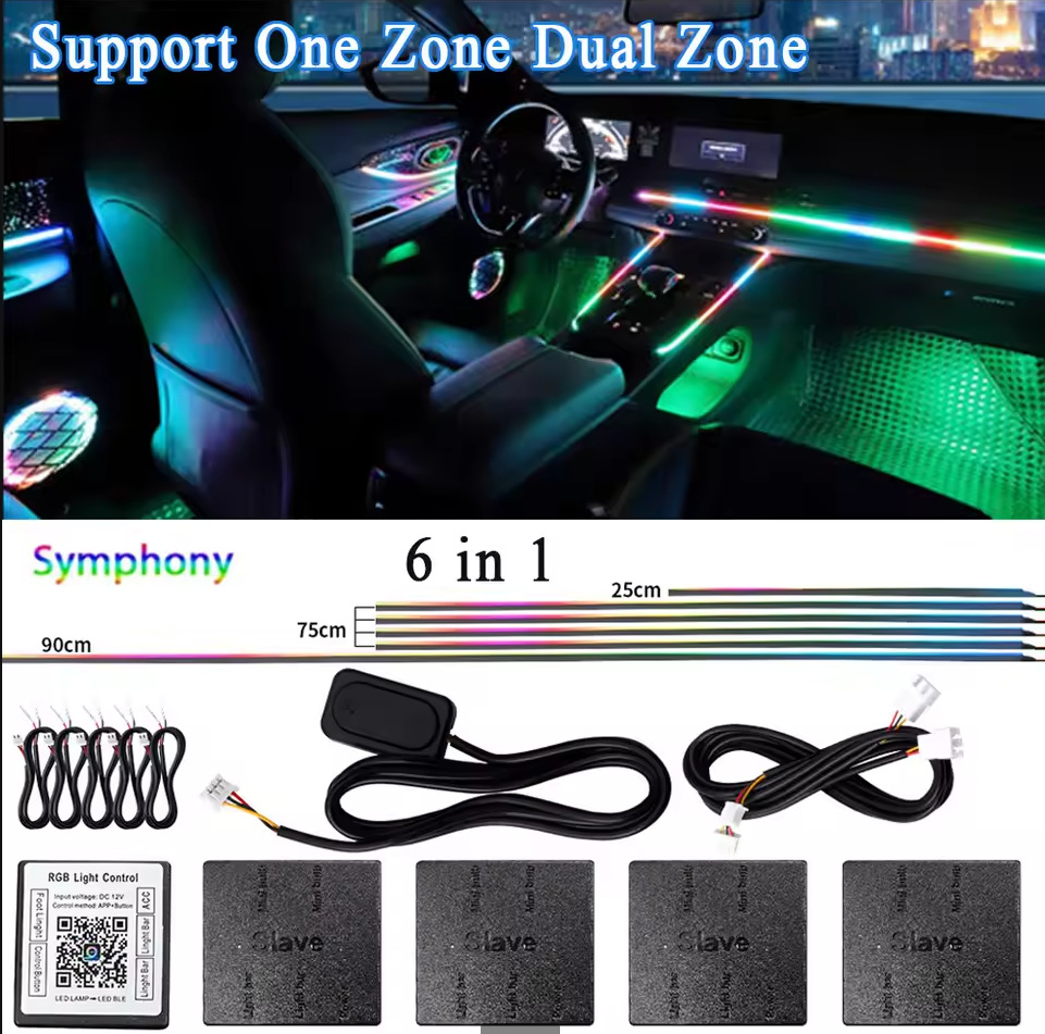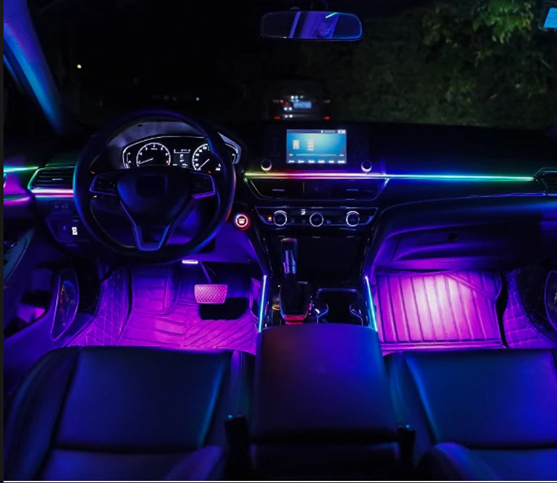 Bring a new level of atmosphere to your vehicle with the Dynamic In-Car RGB Ambient Lighting system. Designed for drivers who love a premium interior feel, this lighting kit fills the cabin with smooth color transitions and vivid rainbow effects. The 12-volt LED setup is universal and works with most vehicles, delivering a stylish and modern glow throughout the interior.